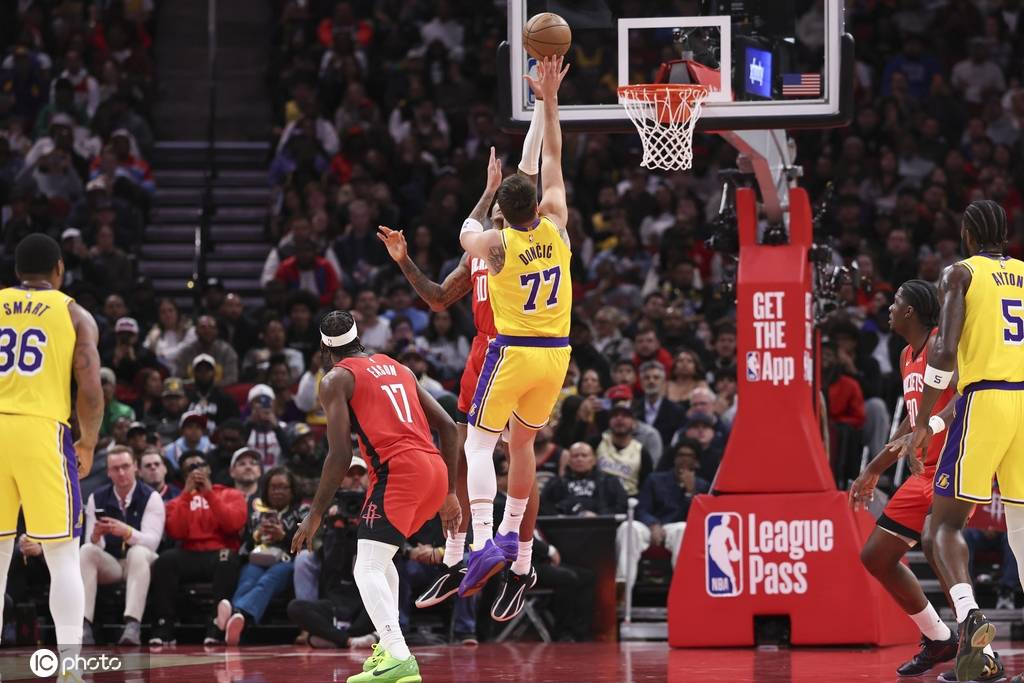 湖人队首发:卢卡-东契奇、勒布朗-詹姆斯、奥斯汀-里夫斯、马库斯-斯马特、德安德烈-艾顿